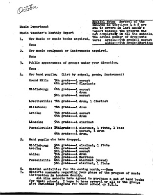 - EWP 5-2 Yr 1960 October Music Departyment Monthly Report
