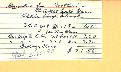 EWP 05-3 Yr 1953 Invoices for Field Trips from Leesburg HS to Washington DC and Aldie April and May 1953 invoices and payments for school bus trips in support of high school baseball, football and basketball games, and a trip to The Smithsonian and the Capital.