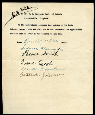 EWP 2-5A Petition St. Louis 1930 Teacher Hire