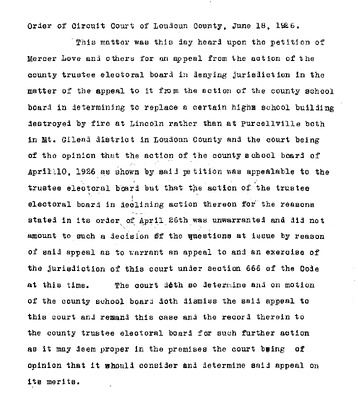 EWP 2-5B Yr 1926 Law of Lincoln Purcellville School Case "The Law of Lincoln - Purcellville School Case Appeals," provides insight into the legal framework surrounding school board actions and appeals during the Lincoln-Purcellville. School location dispute. It references specific legal codes such as Code 666, Acts of 1924, and Code Section 673, highlighting the importance of adherence to Virginia State Board of Education regulations and procedures in selecting and approving school sites. The mention of Acts of 1922 authorizing condemnation for site selection emphasizes the complexities and legalities involved in establishing school locations. Sections on donations, closing schools, and electoral board membership reveal the various legal considerations that impacted education policies and practices in the area during this time.