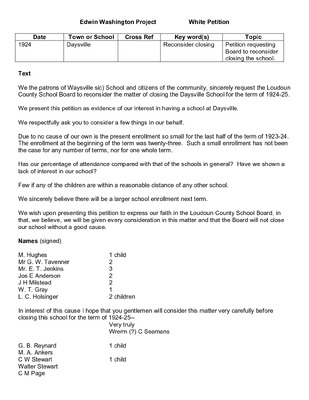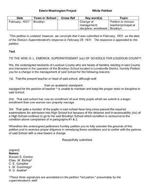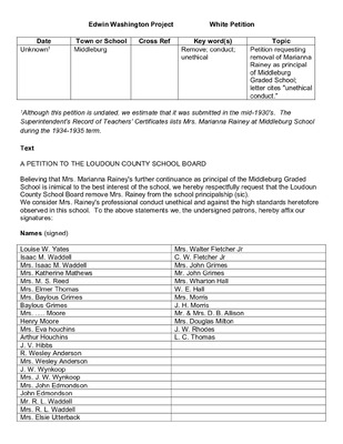 White Petition Aldie 1927 05 00 Petition for New Principal