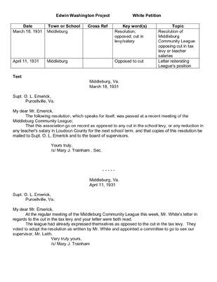 White Petition Emerick 1930 01 14 Teacher Request Turner