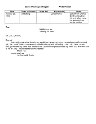 2_5_B Yr 1945 Jan Middleburg Letter Requesting Removal of C Smith from Petition