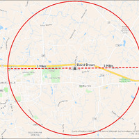 It's estimated that the maximum distance students would have walked to this school is 3 miles one way. The graphic shows the area from which students may have walked to this school.